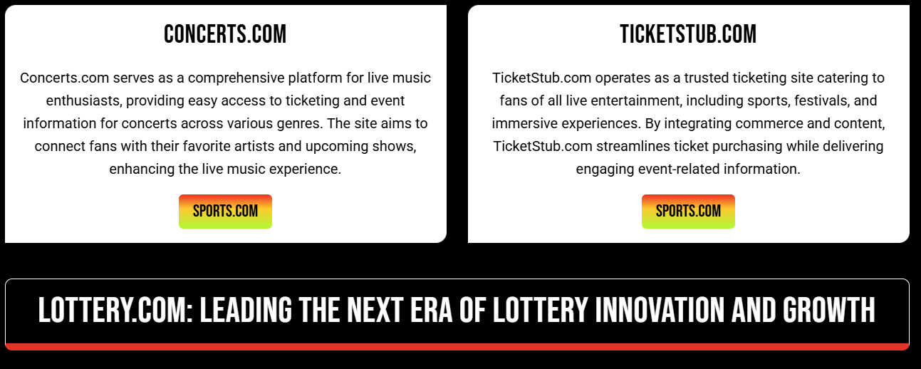 Family of Brands Including Sports.com, Concerts.com, and TicketStub.com, to Form a Unified Ecosystem That Integrates Gaming, Entertainment and Sports.