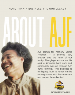 "In our deepest grief, we searched for a way to keep his spirit alive. AJF Junk Removal is that promise," said Dennis Freeman, co-founder. "Anthony's legacy is why we don't just haul junk; we approach every single job with a level of care and respect that you won't find anywhere else. This business is his living memorial."