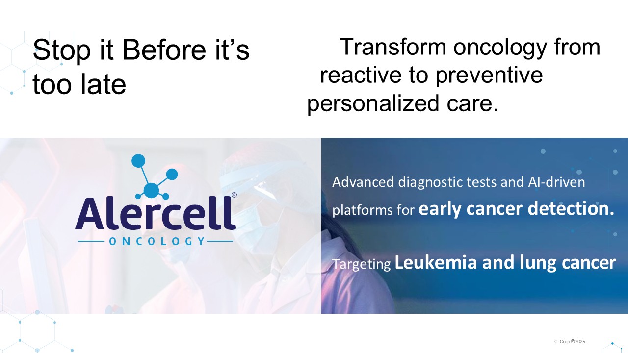 Alercell Inc. is pioneering AI-powered diagnostics through its Deep Leukemic Cloud Platform™ (DLCP) and LENA Code©, a suite of epigenetic and methylation-based tests designed for early, accurate, and affordable cancer detection.