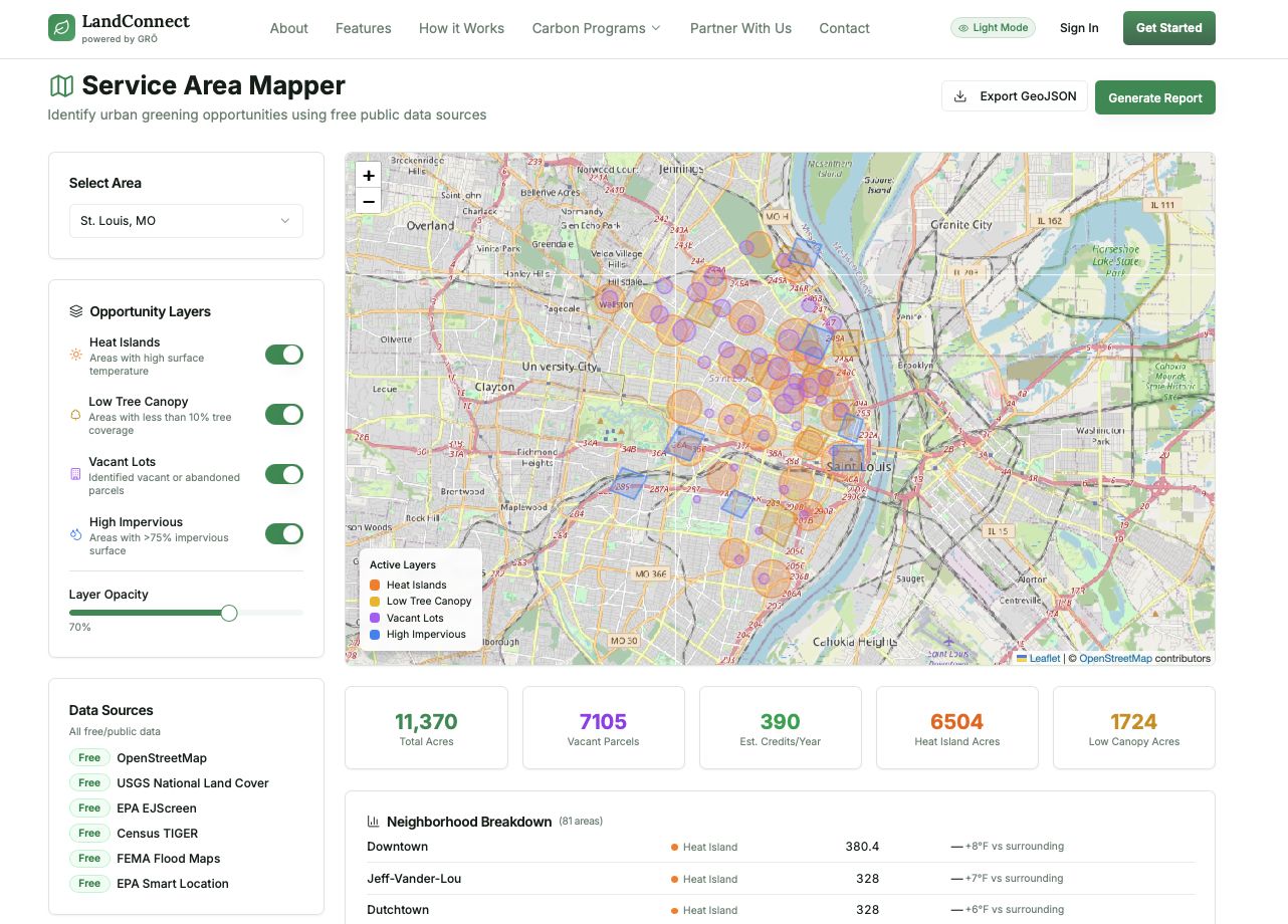 "Across the pilot region alone, we've identified over 12,000 vacant and underutilized parcels," said the LandConnect team. "What if the same properties that cost cities money could generate revenue, increase surrounding property values, and provide measurable environmental benefits? That's exactly what LandConnect delivers."