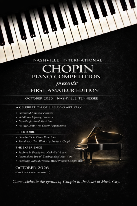 NASHVILLE, Tenn. - Californer -- Nashville, TN — The Nashville International Chopin Piano Competition is proud to announce the launch of its First Amateur Edition, to take place in October 2026 in Nashville, Tennessee.