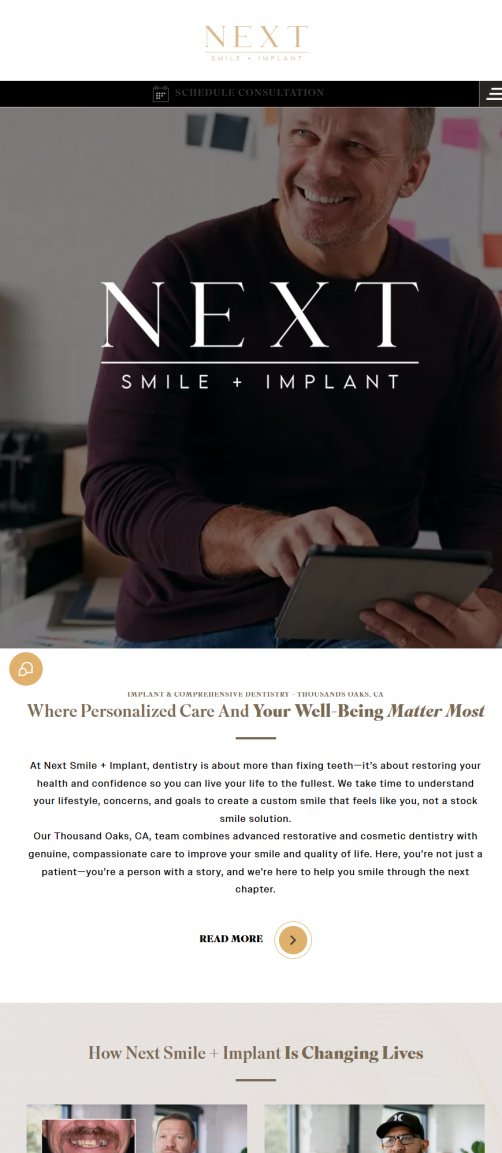 The redesigned website reflects Next Smile+Implant's mission to create a welcoming, supportive environment where patients feel empowered to achieve healthy, confident smiles. With advanced technology and a focus on personalized care, the practice continues to deliver transformative results and exceptional patient experiences.