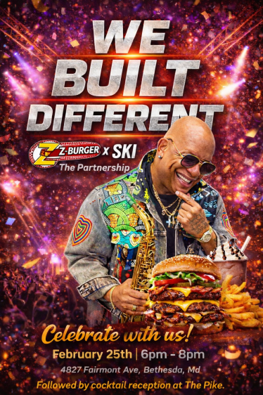 To commemorate the partnership, Z-Burger will host a reception celebration on Wednesday, February 25th from 6:00 PM – 8:00 PM at Veteran's Park, 4827 Fairmont Ave, Bethesda, MD. The evening will continue with an exclusive Cocktail Reception at The Pike, 4906 St. Elmo Ave, Bethesda, MD, bringing together business leaders, media, influencers, and community tastemakers for a night of celebration, networking, and culture.