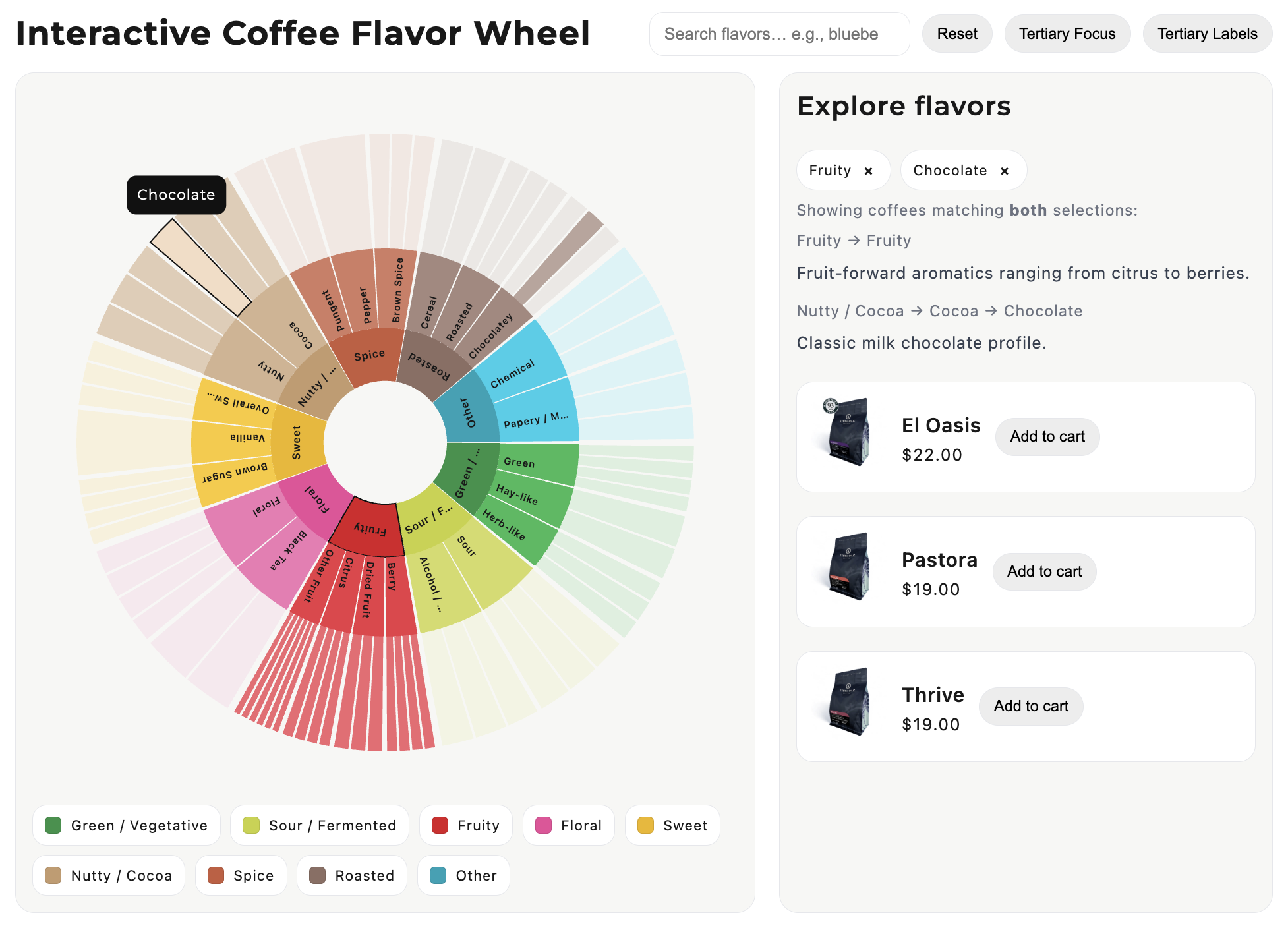 Traditionally reserved for coffee professionals and Q-graders, the Coffee Taster's Flavor Wheel has been reimagined by Steel Oak Coffee into an intuitive retail tool. Visitors to the roaster's website can explore categories like Floral, Fruity, or Chocolate, then instantly see coffees that match those sensory notes—making specialty coffee more approachable than ever.