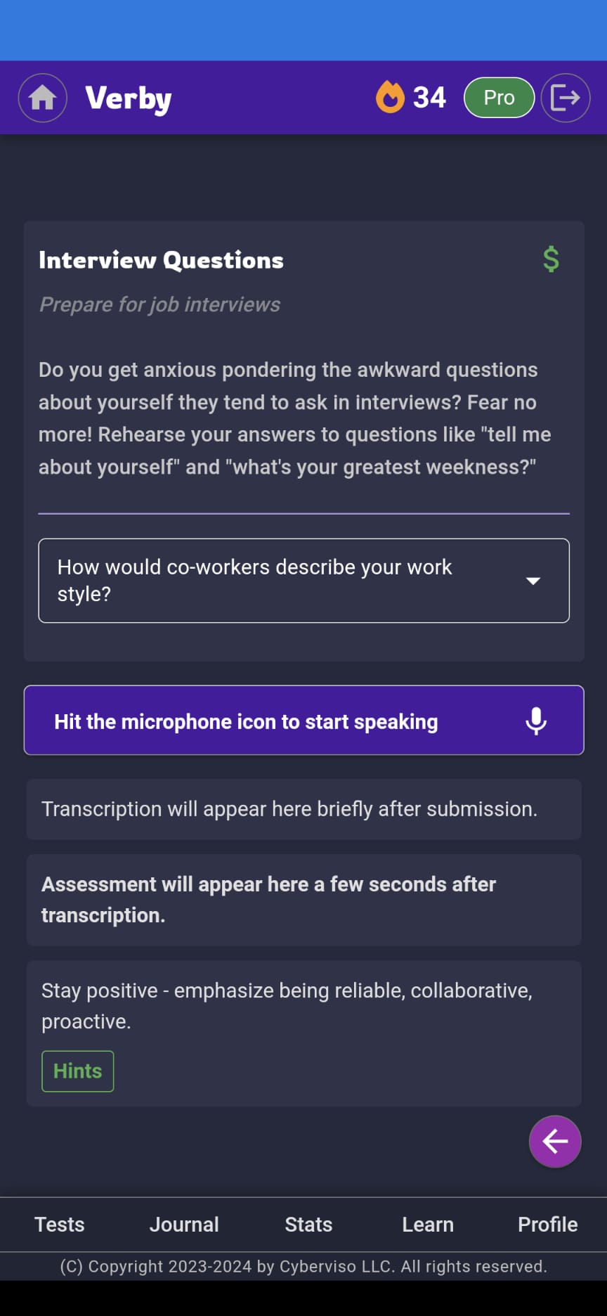 Tushar, a senior-level engineer from the Boston area who recently faced a layoff, praised Verby: "The mock interview feature is quite good. I was able to set it up for the exact position I was interested in. The questions are spot-on, and the detailed, comprehensive, and relevant hints for each question helped me prepare. The scoring system is great, and with practice, I was able to improve my scores."